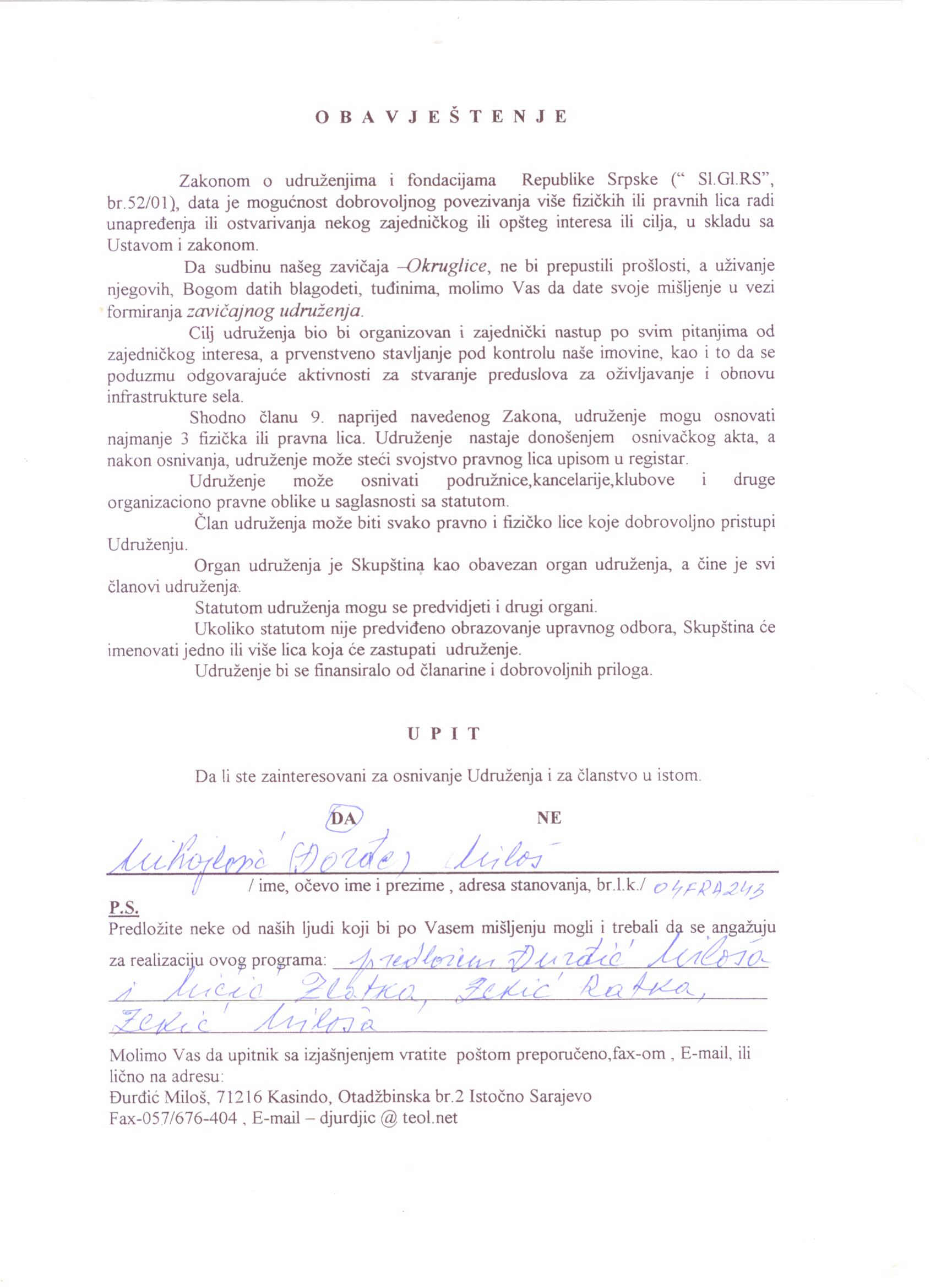 7. Обавјештења о оснивању